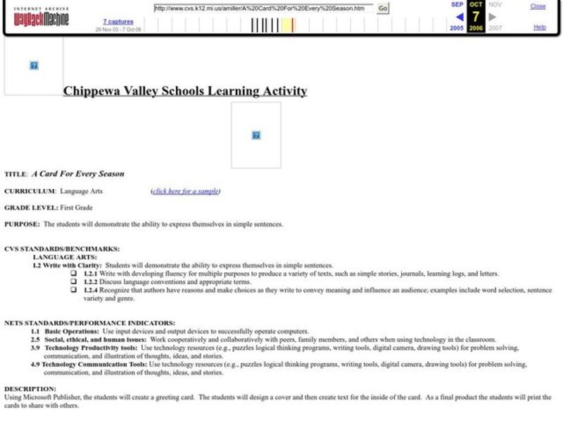 First graders express themselves in simple sentences through the use of computer generated greeting cards. In this greeting card lesson plan, 1st graders use Microsoft Publisher to design a cover and create text for the inside of a greeting card. Students print cards to share with others.