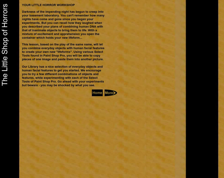 A Paint Shop Pro lesson that allows learners to explore the select tools. "Combine everyday objects with human facial features to create your own new lifeforms," using cut, copy, and paste features.