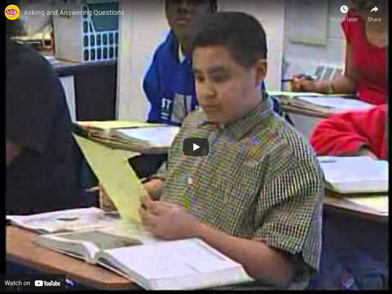 A teacher uses whole-class instruction and a graphic organizer to guide students as they formulate and answer questions related to their text.
