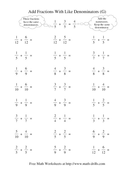 This Add Fractions With Like Denominators (G) worksheet also includes: