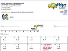 For this addition worksheet, students complete 3 different sets of addition problems to enhance their math skills. Students solve 28 problems.