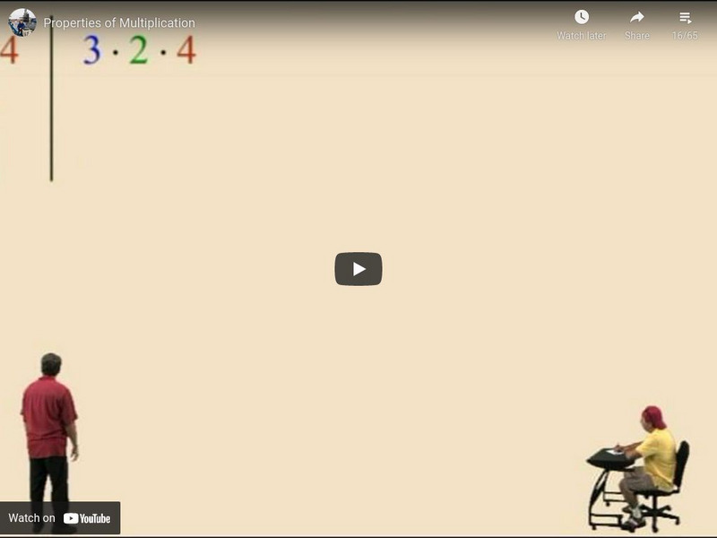 The commutative and associative properties of multiplication are introduced. Techniques for evaluating expressions containing only multiplication operations are demonstrated.
