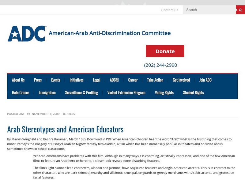 This site provides an analysis of stereotypes of Arabs in US pop culture and textbooks, the role of educators in combating these stereotypes, and the effects of such stereotypes on Arab American children. It includes a bibliography for further reference for teachers.