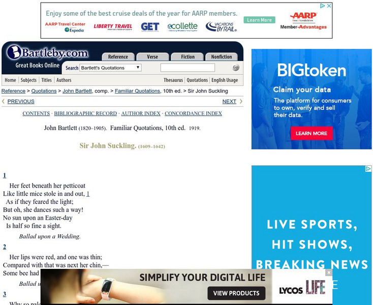 This site has ten famous quotes from Sir John Suckling's plays and poems are featured here.
