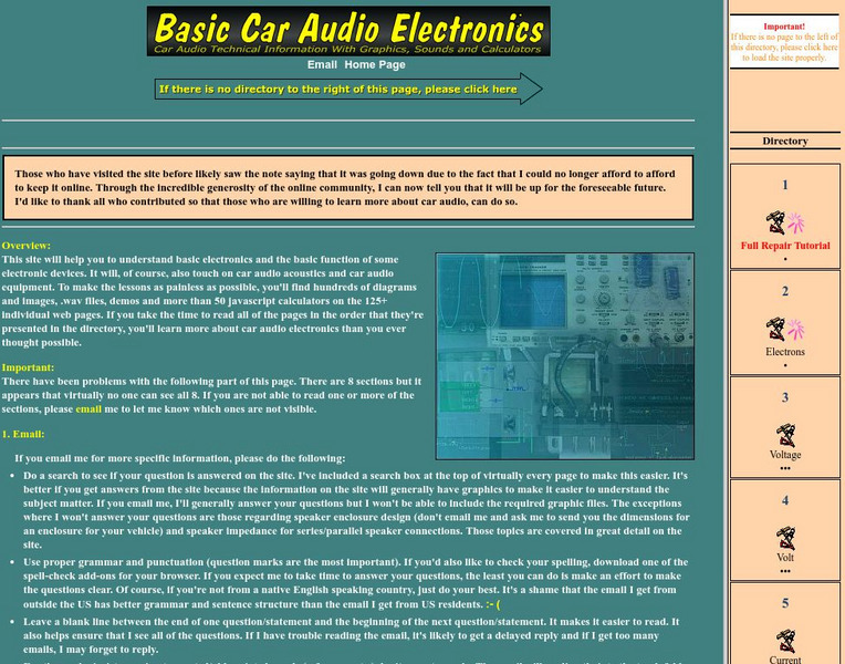 The complete site for car audio. This site is an excellent resource for the newbie or the experienced electronics technician.