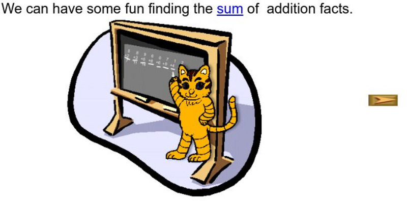 An interactive learning tutorial helps students practice addition facts up to 18.