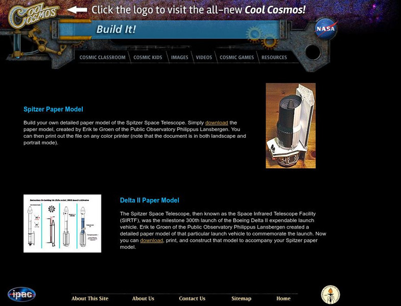 Make a model of the Spitzer Space Telescope using simple materials. Also included is a model of the Boeing Delta II Launch Vehicle which completed a historic 300th launch with the Spitzer Telescope on board.