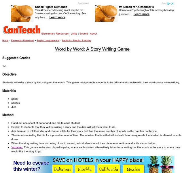 For grades 1 to 3, this game has students write a story by focusing on the word choice.