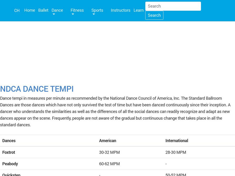 This site contains a listing of ballroom dance forms and the appropriate tempi in which to perform them.