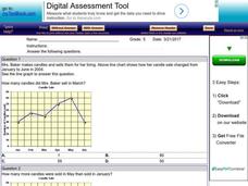 In this charts and graphs worksheet, students refer to charts and graphs to solve word problems. Students complete 10 multiple choice word problems.