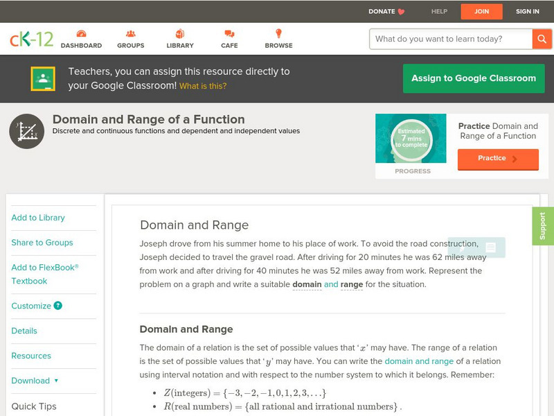 [Free Registration/Login may be required to access all resource tools.] This concept introduces how to find the domain and range of relations.
