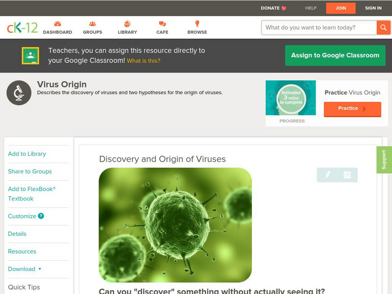 [Free Registration/Login may be required to access all resource tools.] Describes the discovery of viruses and two hypotheses for the origin of viruses.