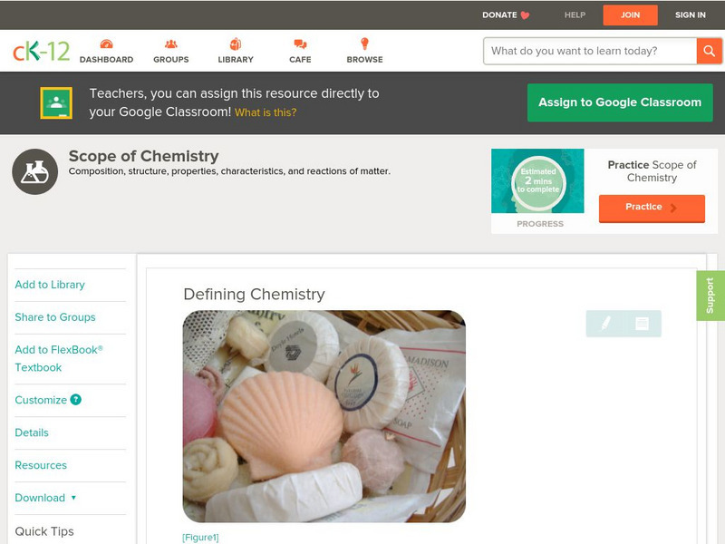 [Free Registration/Login may be required to access all resource tools.] Describes a definition of chemistry and a consideration of both macroscopic and microscopic phenomena.