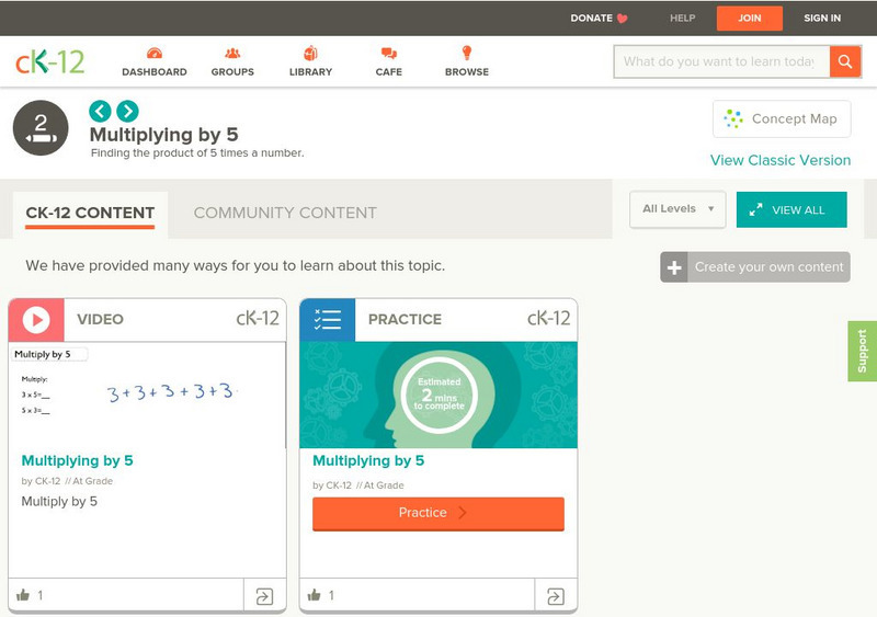 [Free Registration/Login may be required to access all resource tools.] The video explains the connection from multiplication to repeated addition with multiplying by five. The video is followed by a series of practice questions to assess student comprehension of the concept.