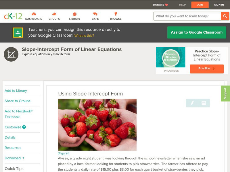 [Free Registration/Login may be required to access all resource tools.] This lesson covers find the equation of a line in slope-intercept form.