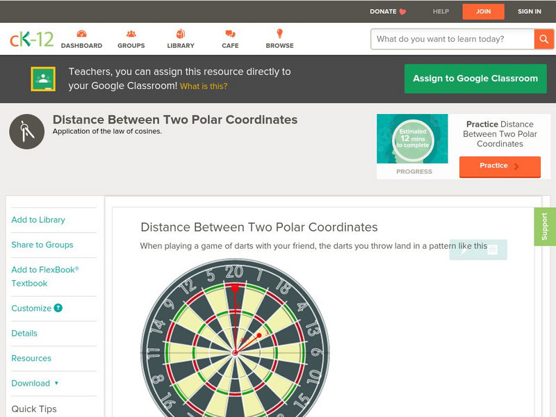 [Free Registration/Login may be required to access all resource tools.] Find the distance between two points expressed in polar coordinates.
