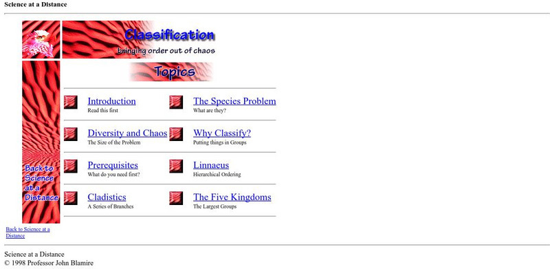 A self-directed module on all aspects of biological classifications that covers the species problem, diversity and chaos, cladistics, putting things in groups, and so on.