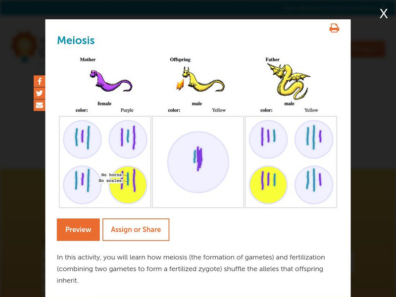 Why don't you look exactly like your brother or sister? Meiosis involves the reducing of genetic material and chromosome shuffling which results in different genetic combinations. In this activity, students will view a computer model of meiosis where they inspect the chromosomes and chose gametes to fertilize.