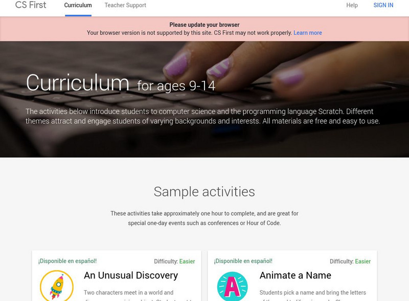 Activities that teach learners basic computer science concepts using the programming language Scratch. Includes lots of additional supports for teachers. All materials are free and teachers sign in to create a class.