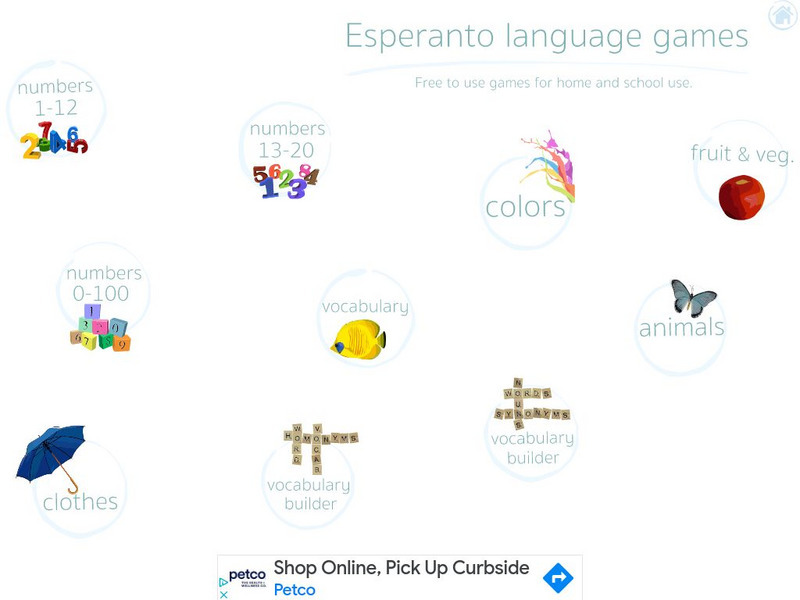 A universal language developed in 1887 is available to study. Discover vocabulary and common phrases of Esperanto. Challenge comprehension of the lingo with online games.