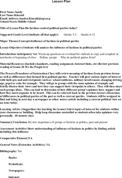 This Do Factions Control Political Parties Today? lesson plan also includes: