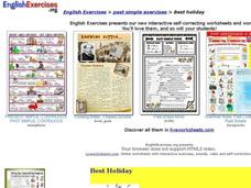 In this past simple verb form interactive activity, students fill in 7 blanks in a paragraph about a trip to Arizona. They use the proper verb form before submitting their answers using the "Done" button.