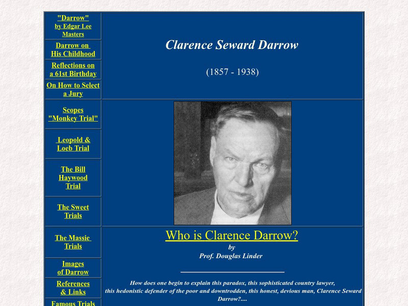 Site provides information on Darrow himself, the Scopes "Monkey Trial," the Leopold and Loeb Trial, and other famous trials with which he was associated. Great photographs are included.