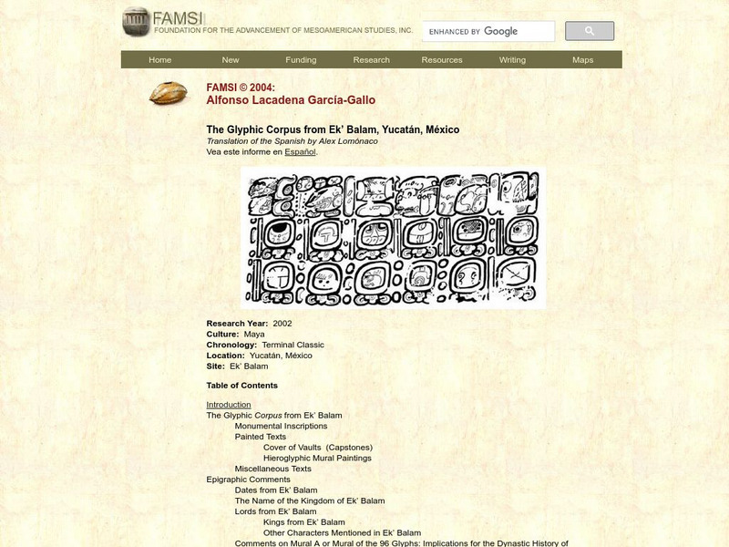Offers translations of hieroglyphs, and therefore history, of the Mayan dynasties and rulers at Ek' Balum in Yucatan, Mexico.