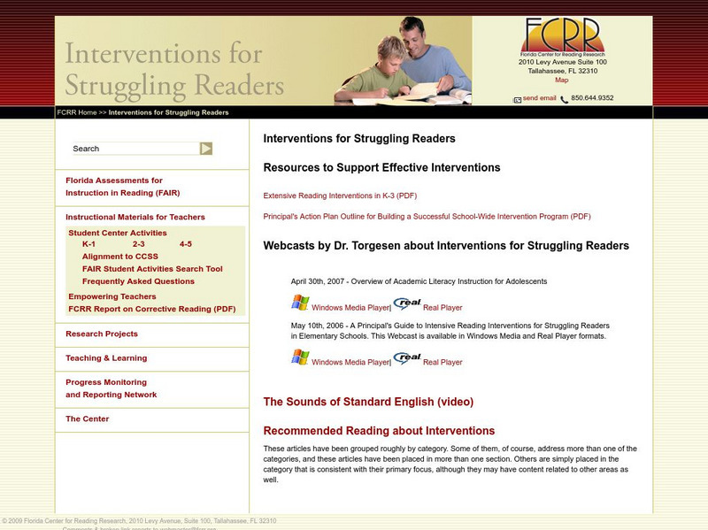 This site offers links to an action plan a for school-wide intervention program. It includes a PDF of the principal's action plan outline, links to web casts of the intervention plan, and a video about the sounds of the English language for teachers to be sure they are correctly pronouncing the English language to their students.