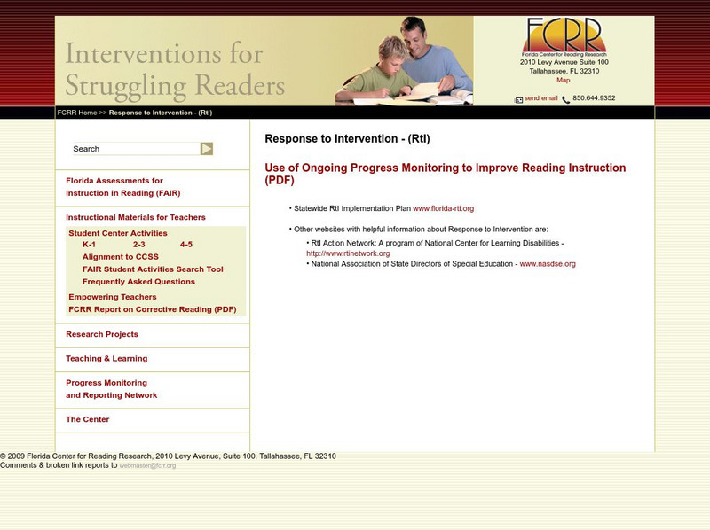This site offers links to Florida's State-wide Implementation Plan, The Use of Ongoing Progress Monitoring to Improve Reading Instruction (PDF), Rt1 Action Network, and the National Association of State Directors of Special Education.