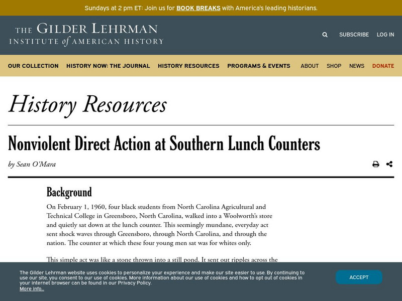 [Free Registration/Login Required] A lesson plan that teaches about nonviolence and uses the civil rights lunch counter protests as examples.