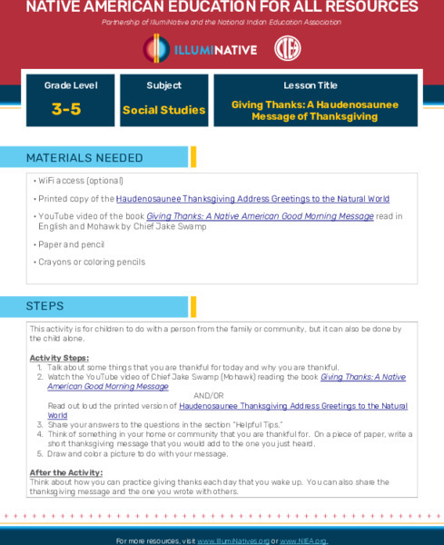 This Giving Thanks: A Haudenosaunee Message of Thanksgiving activity also includes: