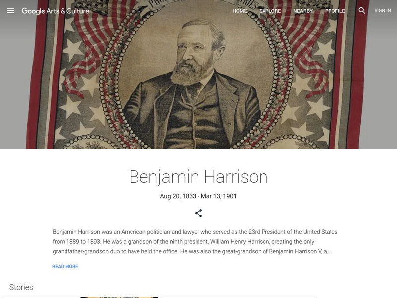 This visual website from Google Cultural Institute shares background information and photos about Benjamin Harrison.