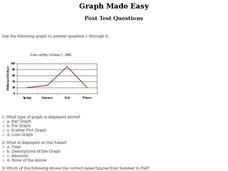 In this graphs worksheet, students answer multiple choice questions about line graphs and bar graphs. Students answer 10 questions total.