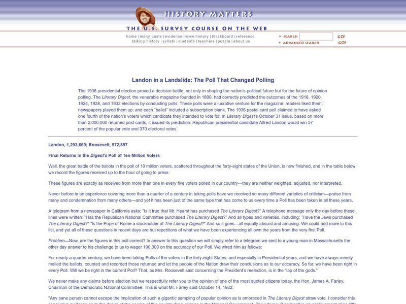 "Dewy Wins" is not the only big mistake made by journalists in predicting the outcome of presidential elections. This article from the Literary Digest, October 31, 1936, predicted that Alf Landon would defeat Franklin Roosevelt by a large margin based on its polling details. Their interpretation of the polling numbers makes for interesting reading, albeit very incorrect.