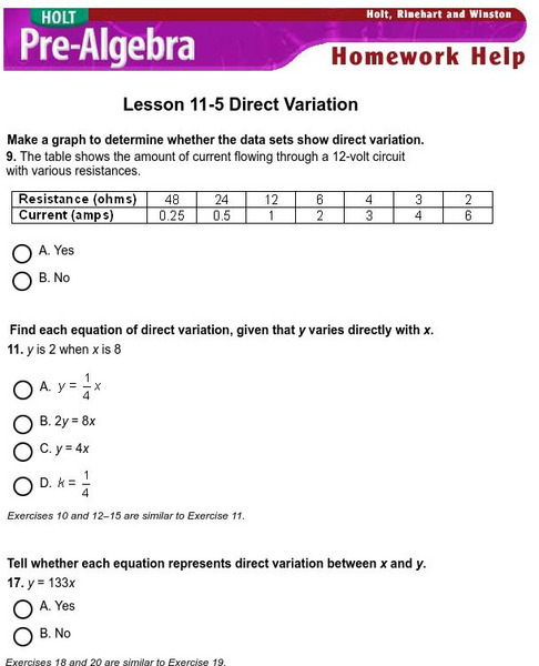Get independent practice working with direct variation. Each incorrect response gets a text box explanation and another try. Correct responses are confirmed.