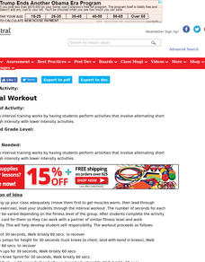 Pupils explore how interval training works by performing activities that involve alternating short bursts of high intensity with lower intensity activities.