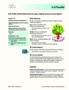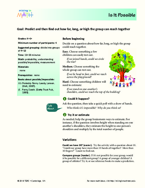 Students brainstorm ideas on how to a group of people could reach the highest together. For this possibilities lesson plan, students test their ideas and see how high they can reach.