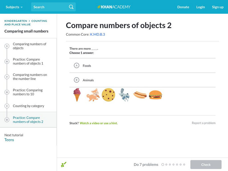 Practice counting to see which group has the most things in it. Students receive immediate feedback and have the opportunity to try questions repeatedly, watch a video or receive hints.