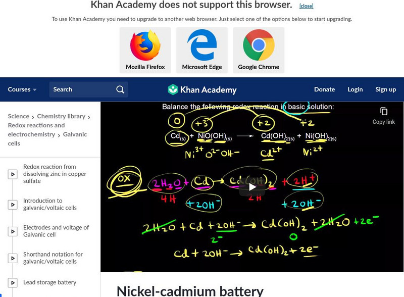 Know how to balance the redox reaction (in base) that occurs in a nickel-cadmium battery. [11:03]