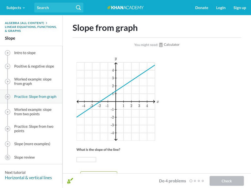 In this practice quiz, students are asked to determine the slope of each line graph. Includes hints.