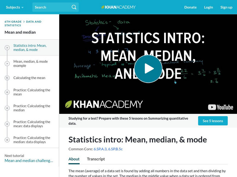 The video introduces statistics and explains the three different ways to describe the center of a data set.
