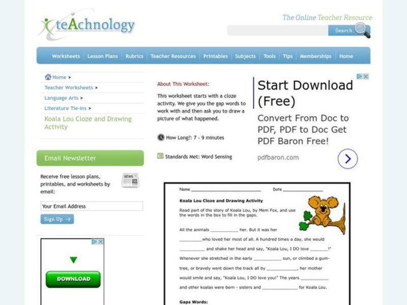 In this reading comprehension instructional activity, students explore the characteristics of Koala Lou. Students read a passage about Koala Lou and then draw a picture of the koala doing something from the passage.