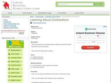 Students identify contractions. For this phonics lesson, students define what a contraction is and give examples on the board. Students complete a worksheet as a follow-up.