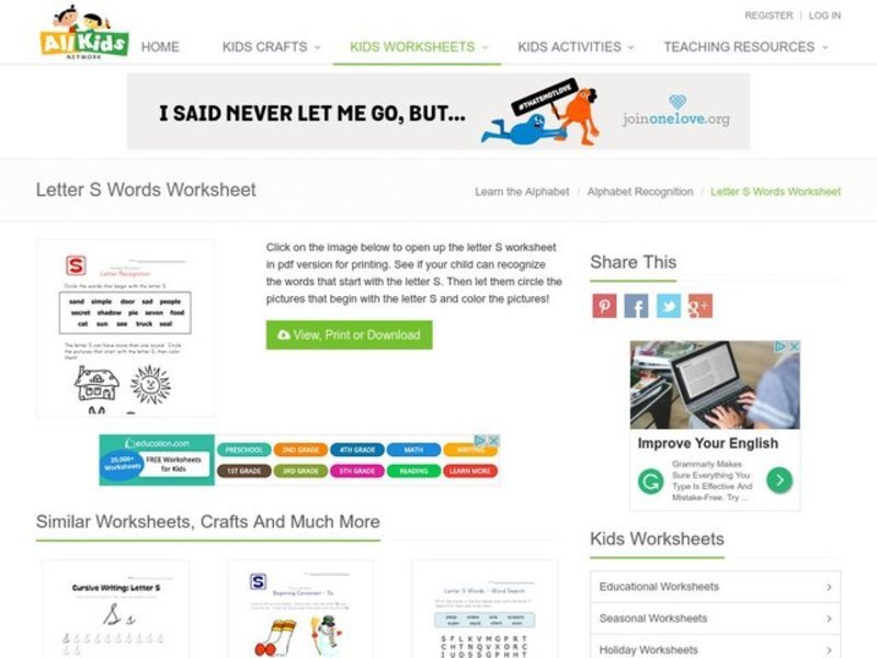In this early childhood letter recognition worksheet, students the words that start with the letter S in the box. Then they circle the pictures that begin with the letter S and color the pictures.