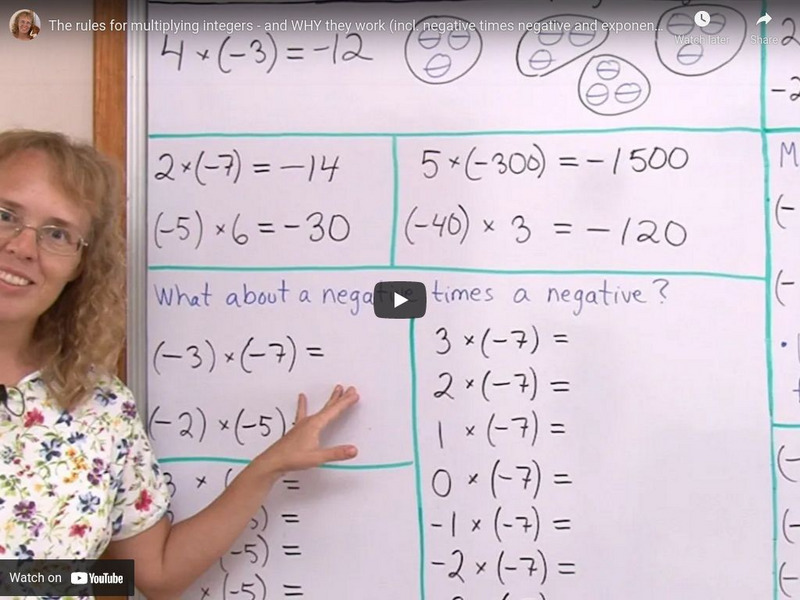 A lesson in how to solve multiplication questions involving negative integers, including some where the negative integer has an exponent. [9:53]