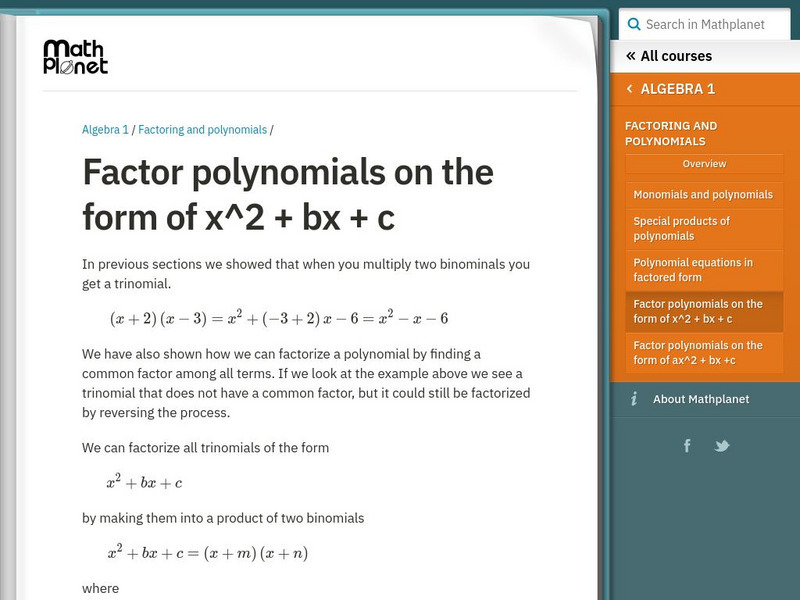 This resource is about factorizing trinomials of the form x^2+bx+c by making them into a product of two binomials x^2+bx+c=(x+m)(x+n) where m+n=b and m*n=c