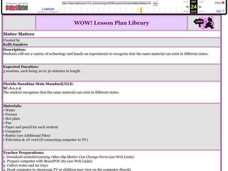 Students review the three states of matter and discuss if water can change from a solid to a liquid. They watch the BrainPOP Jr. video about the states of matter and discuss if they saw water change from a solid to a liquid and what made the change. They then use water and a freezer to create ice.