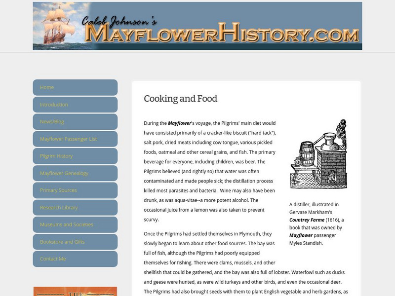 Describes the diet of the Pilgrims, beginning with the voyage across the ocean, then what they were able to catch or harvest from the land when they arrived, and what they learned from the native peoples. Also describes some recipes the Pilgrims used.