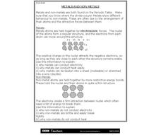 In this metals and non-metals instructional activity, students read an explanation of metals and non-metals and then answer three questions for each about conductivity and form.